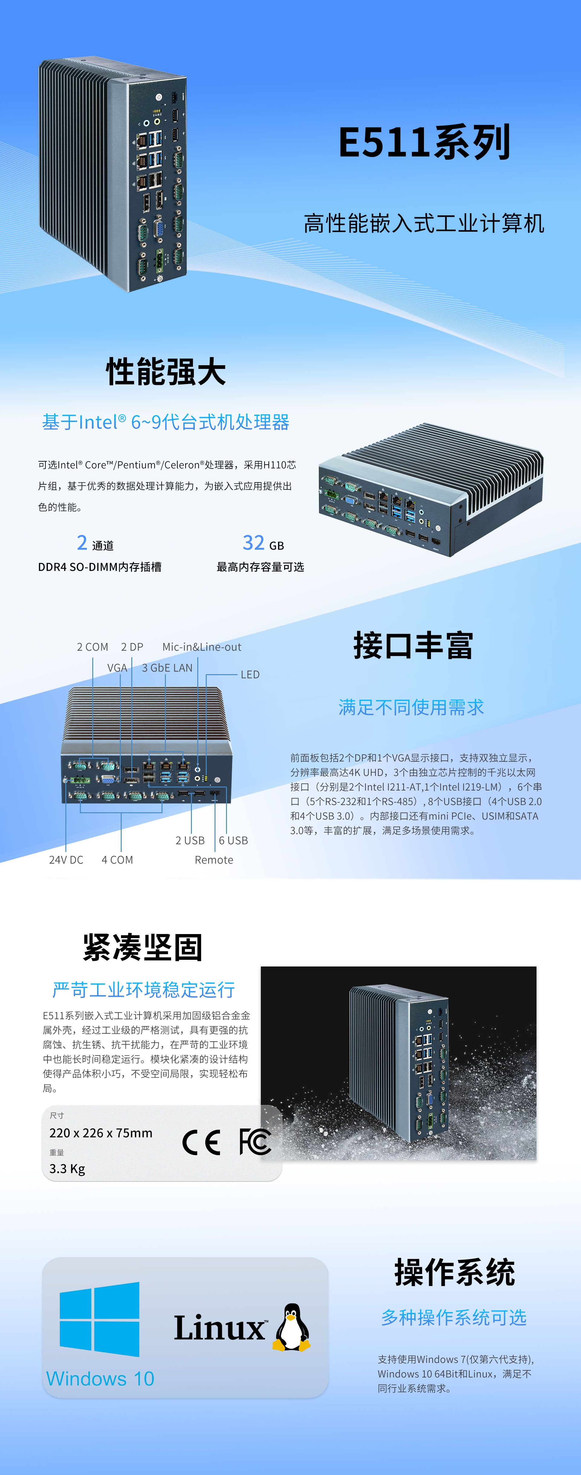 | Expansion | Mini-PCIe | 1 x full-size mini-PCIe, Support WLAN/WWAN module |