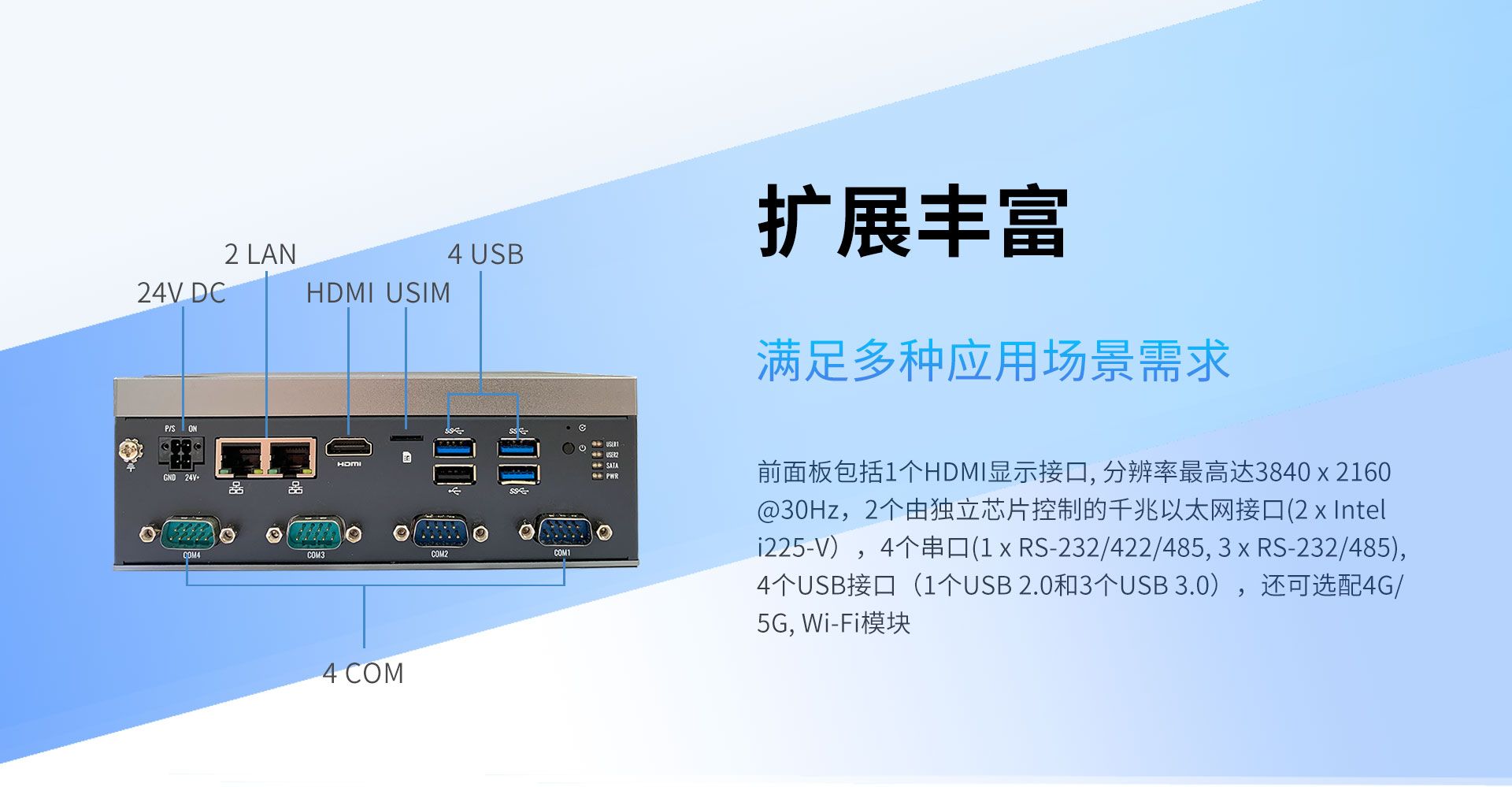该产品适用于智能制造、机器视觉、边缘数据采集与网关控制等场景。根据当前规格,可在 0 ~ 60 °C 条件下承载 7x24 小时持续运行任务,并支持 • Win 10/11 和 Linux 多版本系统 软件环境。