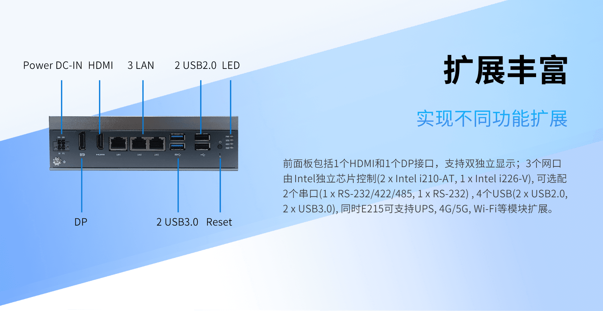 该产品适用于智能制造、机器视觉、边缘数据采集与网关控制等场景。根据当前规格,可在 Industrial range 条件下承载 7x24 小时持续运行任务,并支持 Windows 10/11, centos 8, ubuntu 20.04/22.04 软件环境。