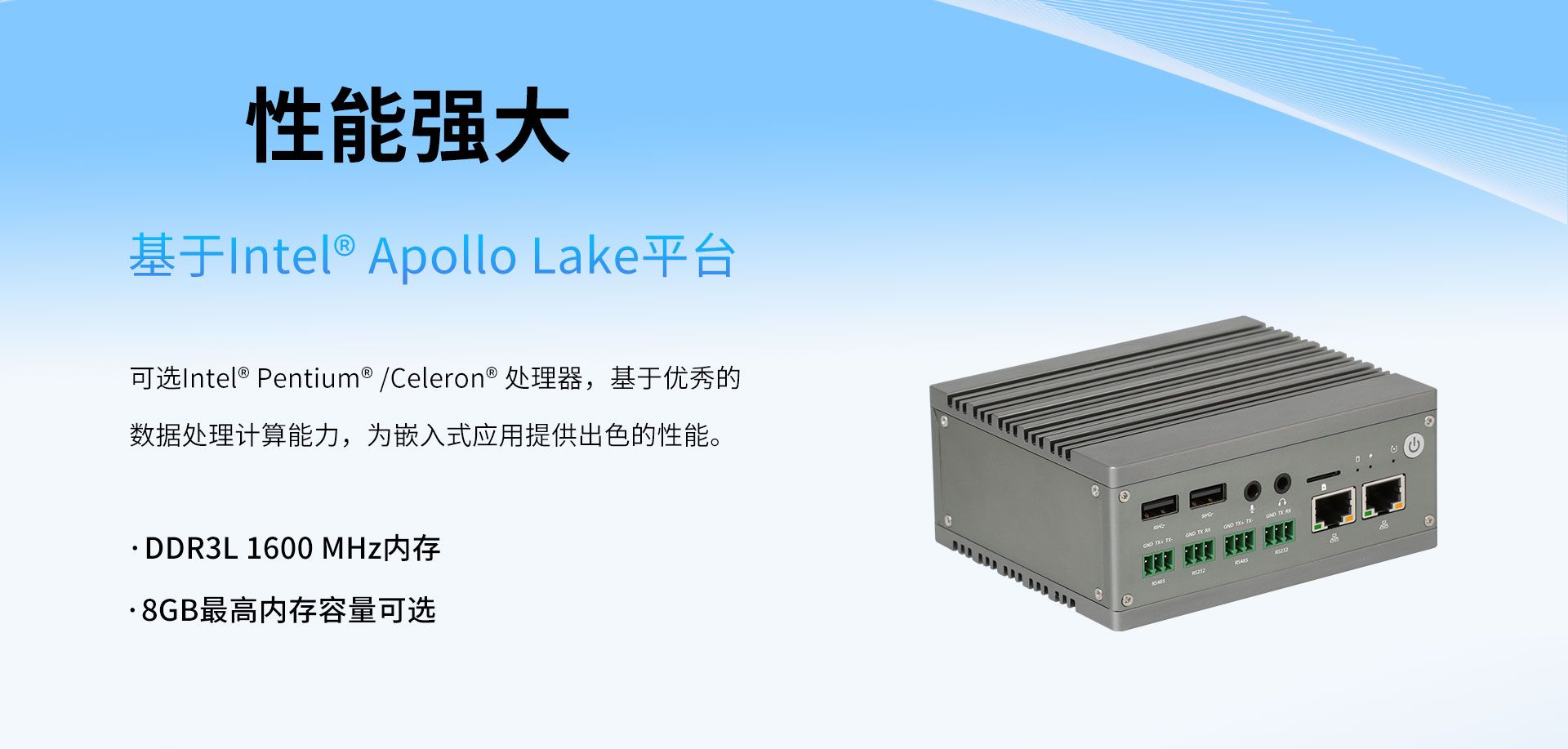 产品分类:超紧凑迷你型;处理器:Intel Apollo Lake SoC处理器;内存:DDR3L 1600MHz(Max. 8GB);网络:N/A;环境温度:Industrial range。以上参数可用于项目初筛与兼容性评估。