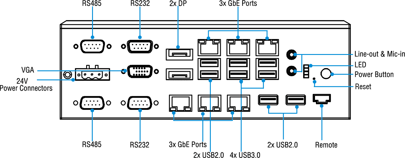 | COM | 2 x RS232, 2 x RS485 | |