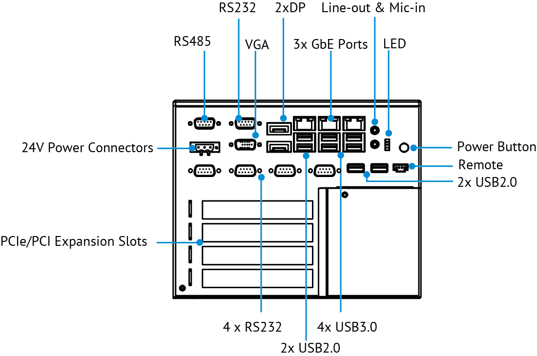 | COM | 3 x RS-232/RS-485, 3 x RS232 | |
