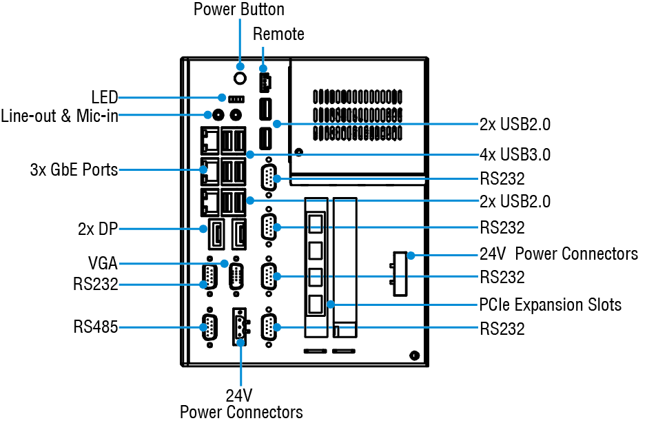 | COM | 3 x RS-232/RS-485, 3 x RS232 | |